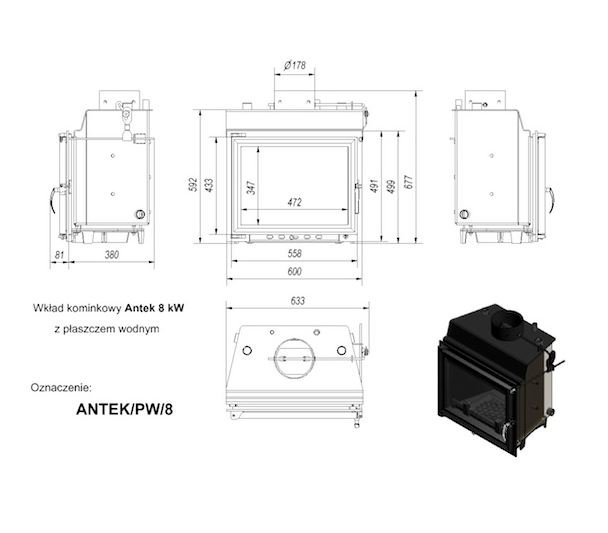 Инструкции, чертежи, документы - Каминная топка Kratki Antek/PW/8/W