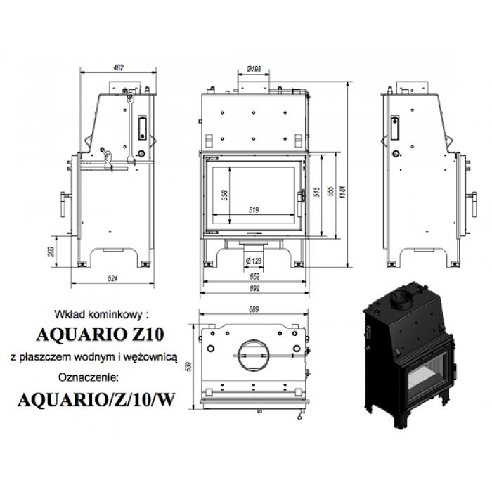 Инструкции, чертежи, документы - Каминная топка Kratki Aquario/Z/10/PW/W