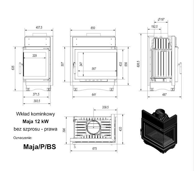 Инструкции, чертежи, документы - Каминная топка Kratki Maja/P/BS (угловое стекло справа)