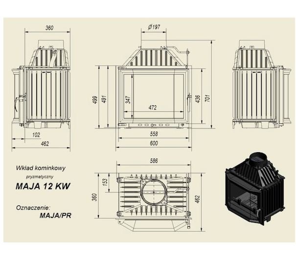 Инструкции, чертежи, документы - Каминная топка Kratki Maja/PR (призма)