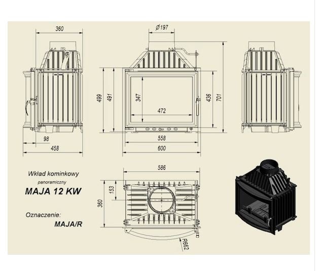 Инструкции, чертежи, документы - Каминная топка Kratki Maja/R (панорама)