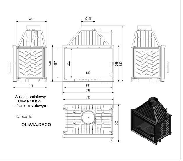 Инструкции, чертежи, документы - Каминная топка Kratki Oliwia/Deco