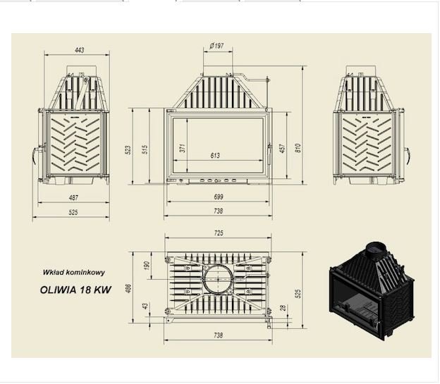 Инструкции, чертежи, документы - Каминная топка Kratki Oliwia/GLASS (двойное стекло)