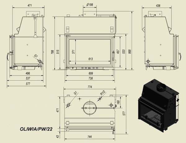 Инструкции, чертежи, документы - Каминная топка Kratki Oliwia/PW/22/W