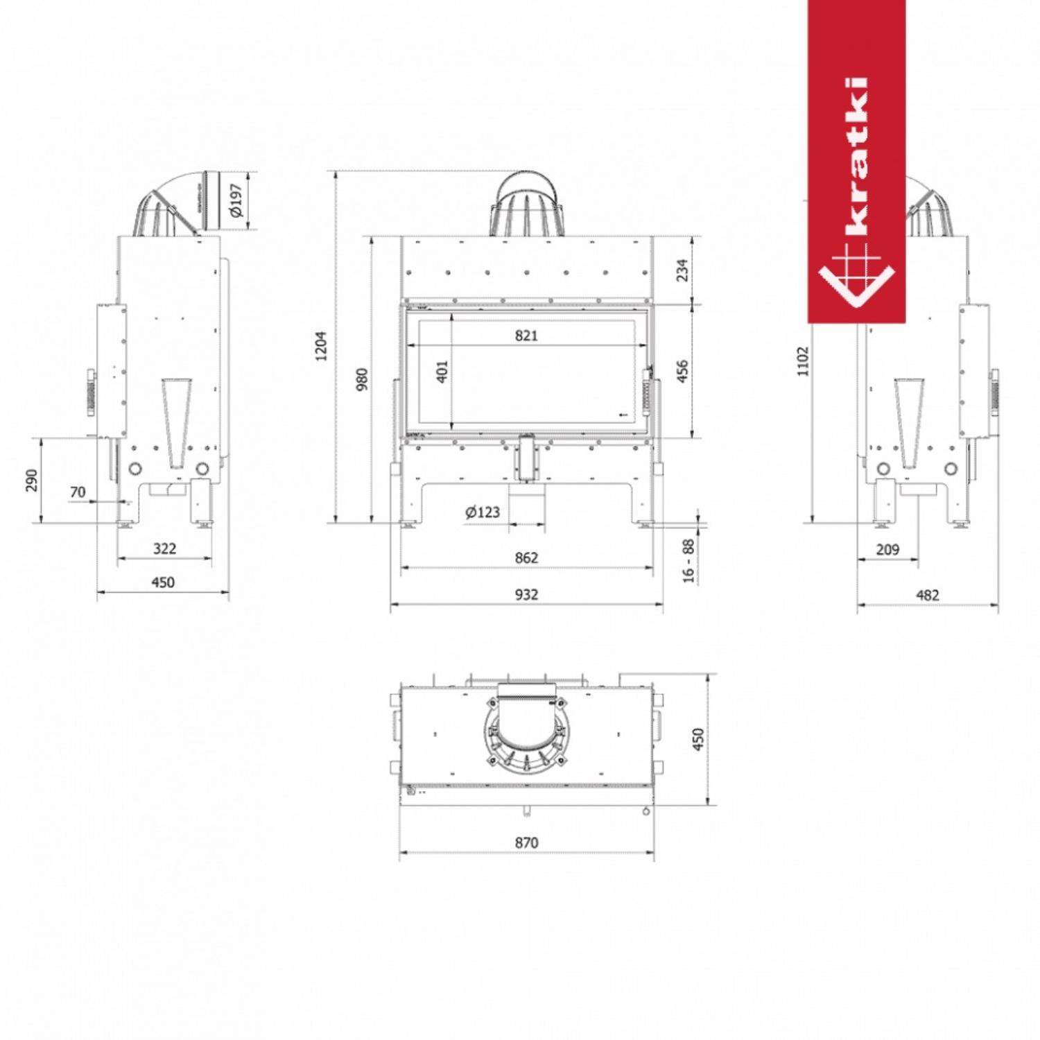 Инструкции, чертежи, документы - Каминная топка Kratki Pro Floki/L с доводчиком