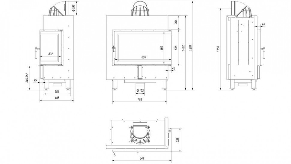 Инструкции, чертежи, документы - Каминная топка Kratki Pro Lucy/14/P/BS, Г-образное стекло справа