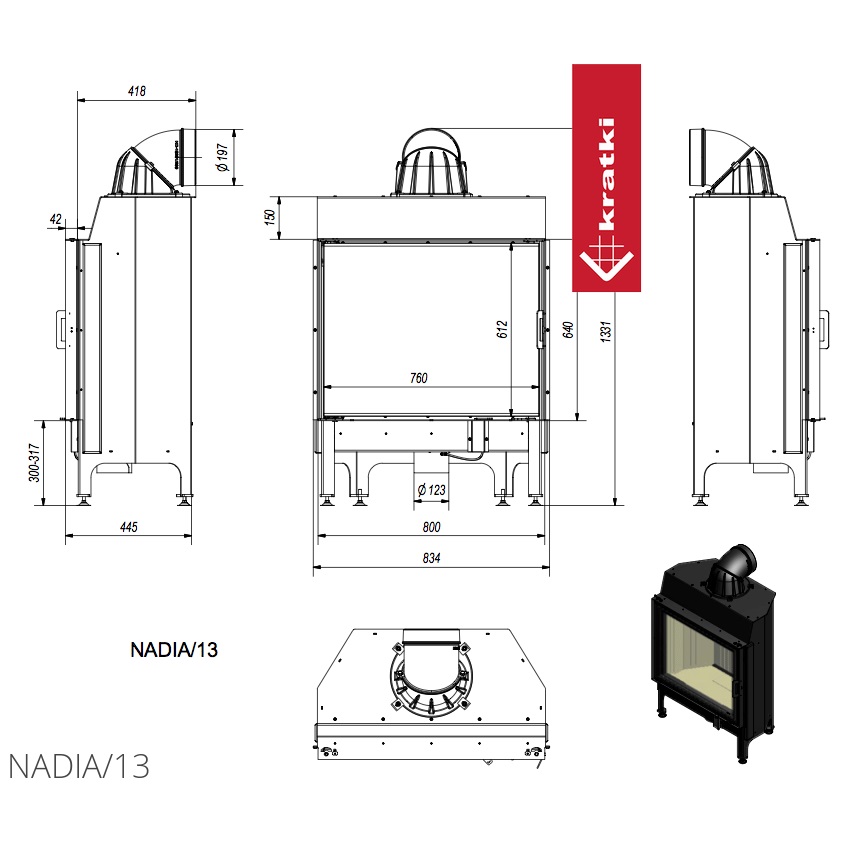 Инструкции, чертежи, документы - Каминная топка Kratki Pro Nadia 13, двойное стекло