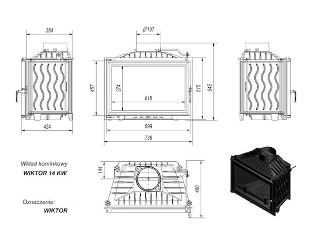 Инструкции, чертежи, документы - Каминная топка Kratki Wiktor/GLASS (двойное стекло)