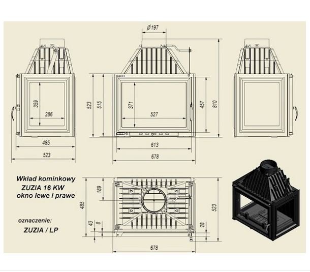 Инструкции, чертежи, документы - Каминная топка Kratki Zuzia/LP (стекло слева-справа)