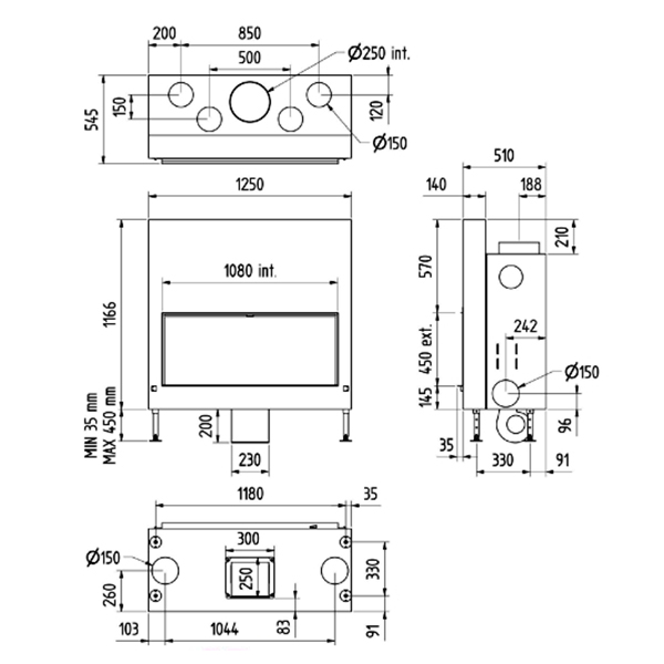 Инструкции, чертежи, документы - Каминная топка M-design Luna 1150 H Gold+