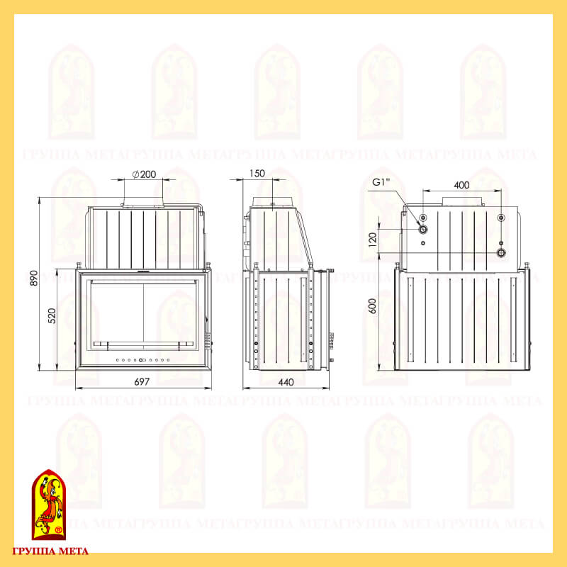 Инструкции, чертежи, документы - Каминная топка Мета Эльба Аква 700Ш