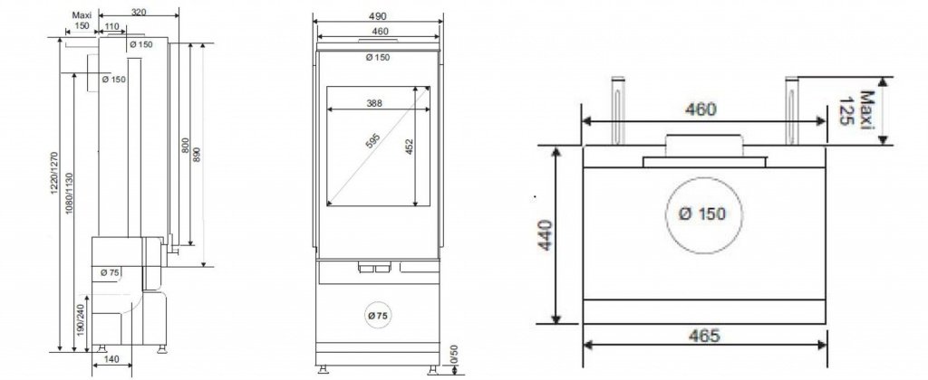 - Диаметр дымохода, мм 150