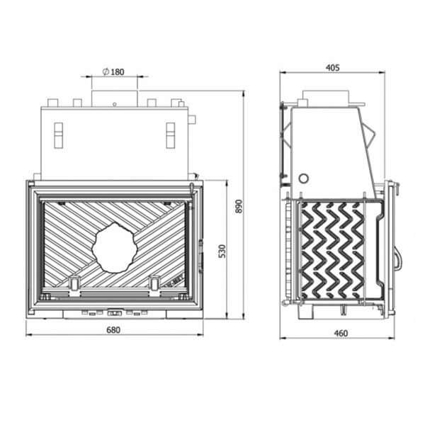 Еще одной отличительной особенностью каминных топок Kawmet является наличие встроенной шиберной заслонки с блокиратором дверцы.