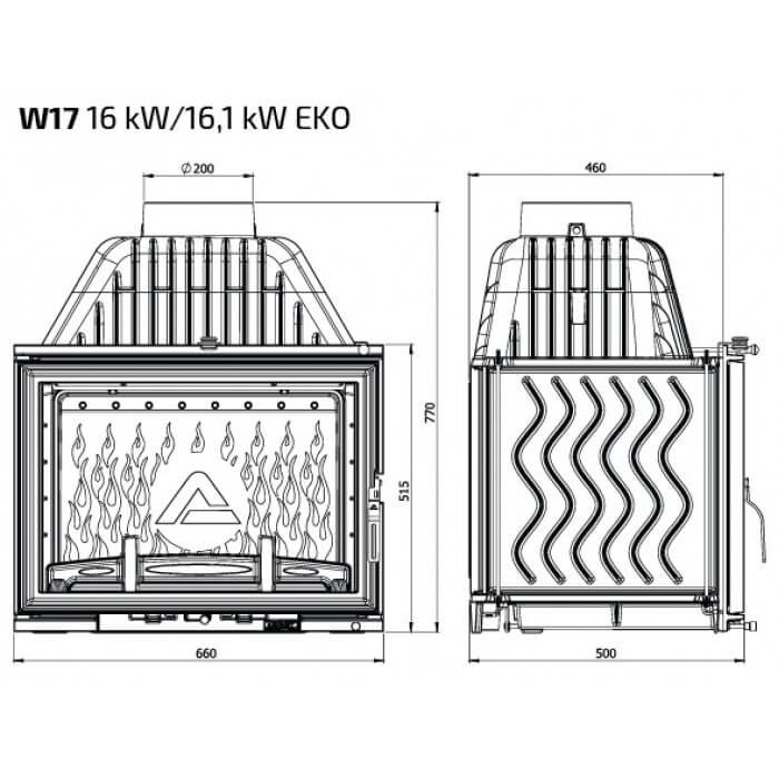 Инструкции, чертежи, документы - Каминная чугунная топка Kaw-Met W17 16,1 кВт Eko