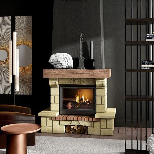 Каминная облицовка Supra Russia Sardane SR, желтая, с деревянной балкой Уцененный