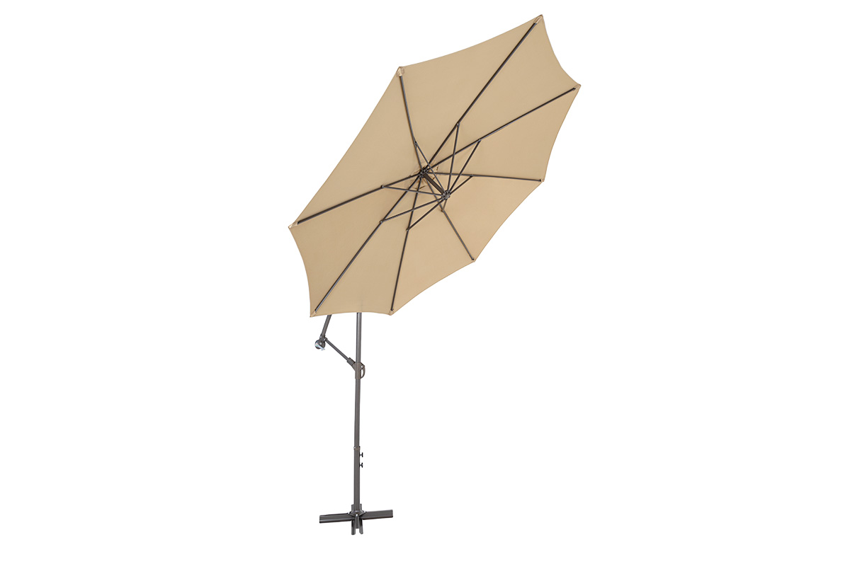 Купол зонта изготовлен из полиэстрового покрытия плотностью 160 г/м2, бежевый цвет ткани идеально сочетается с белым металлическим каркасом диаметром 38мм.