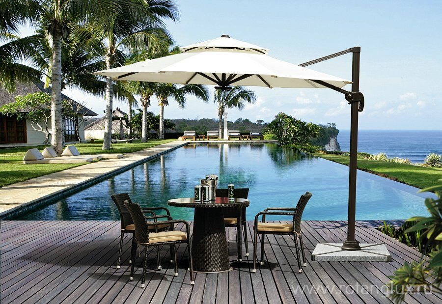 Зонт с боковой стойкой, механизмом наклона купола 6 уровней и системой поворота на 360 градусов. Размер dia 300. Алюминиевый каркас. Покрытие купола водоотталкивающее, устойчиво к выгоранию на солнце,с вентиляционным клапаном от сильного порывистого ветра. Легко открывать и закрывать со встроенными механизмами.