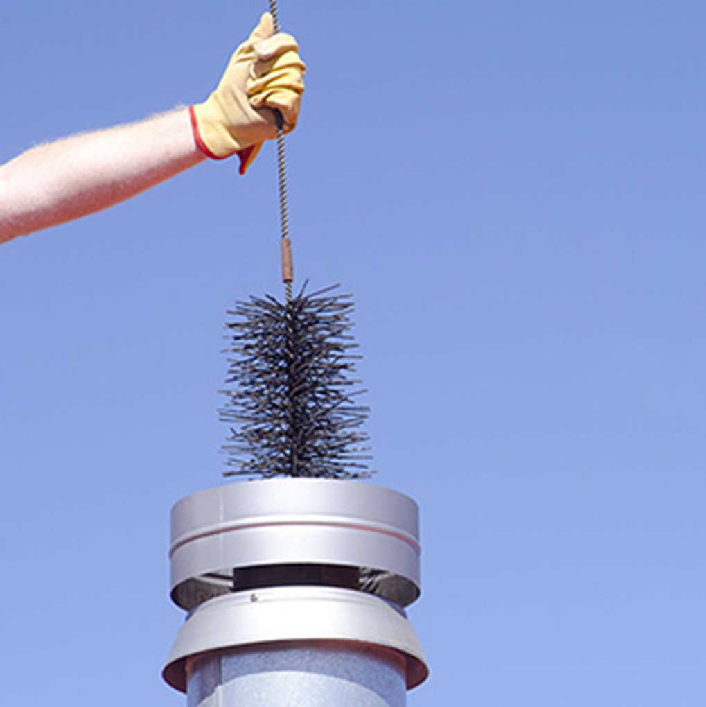 Прочистить дымоход можно самостоятельно, или вызвать специалистов. Подумайте, сможете ли вы справиться с такой серьёзной задачей без посторонней помощи. Для работы понадобится щётка для прочистки дымохода и удлинитель, чтобы опустить её до самой топки. А ещё ветошь, пылесос и обязательно страховочный трос, ведь работать на крыше опасно.Важно правильно выбрать щётку в зависимости от материала, из которого сделан ваш дымоход. Нержавеющая сталь устойчива к коррозии, но тоже подвержена ей, особенно если на её поверхности появляются царапины. Поэтому для чистки металлического дымохода берут пластиковые щетки. Металлические щётки допустимы только для кирпичных дымоходов.