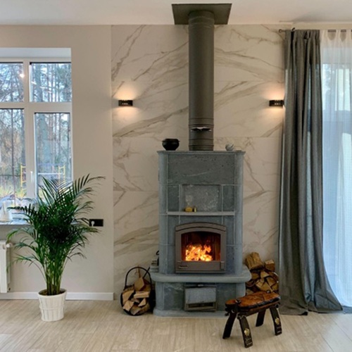 Печь-камин быстро прогревает помещение и обеспечивает стабильное тепло, что особенно важно в загородных домах и дачах.